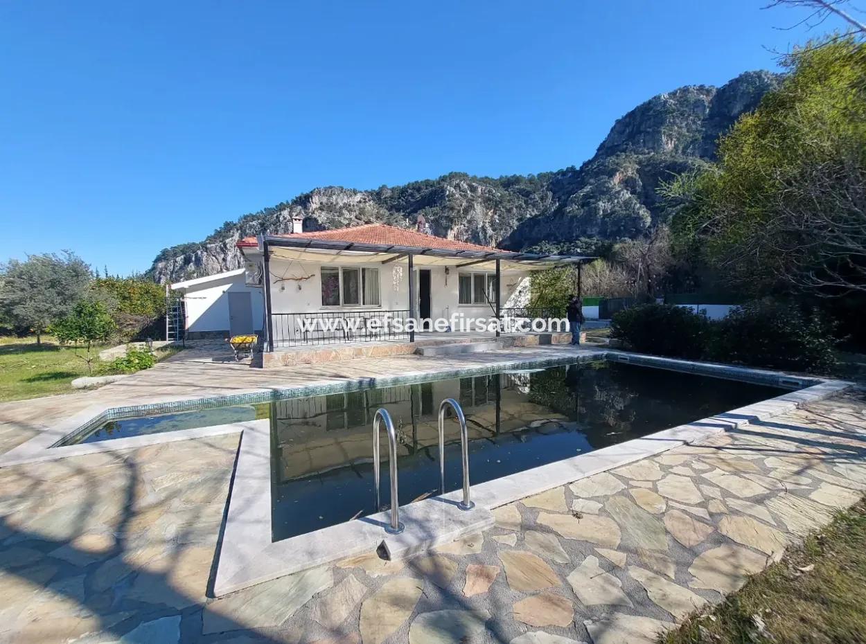 100 m2, 2+1 single-storey detached house for rent on 400 m2 land in Muğla Ortaca Okçular. Furnished. There is 1 living room, 1 kitchen, 2 bedrooms, 1 bathroom wc. The house is surrounded by wire. It is allowed to feed cats and dogs. Balcony. It is in a quiet and calm area, there is a water heater in the house, there are 2 septic tanks, Dalyan is 5 km away.